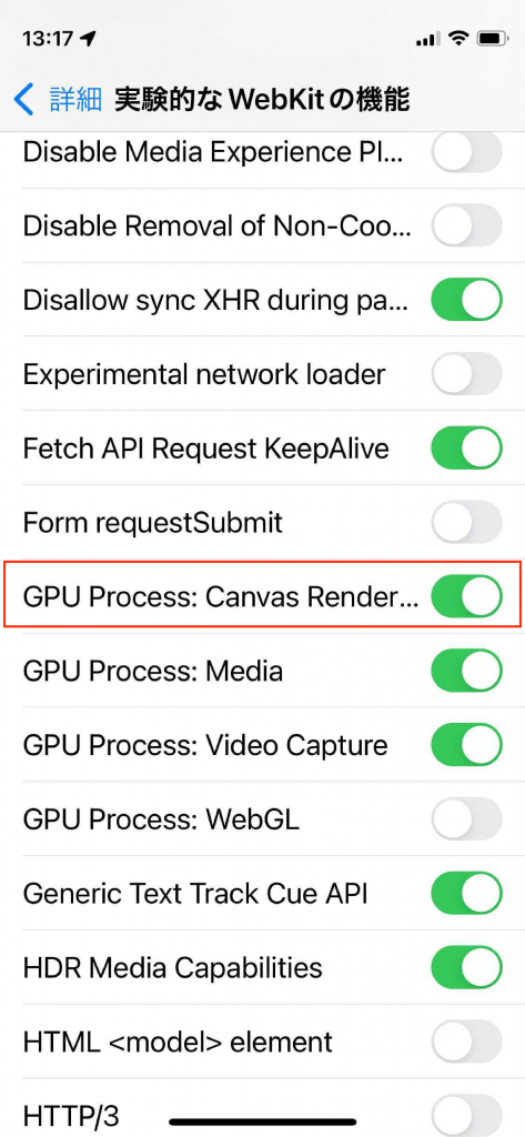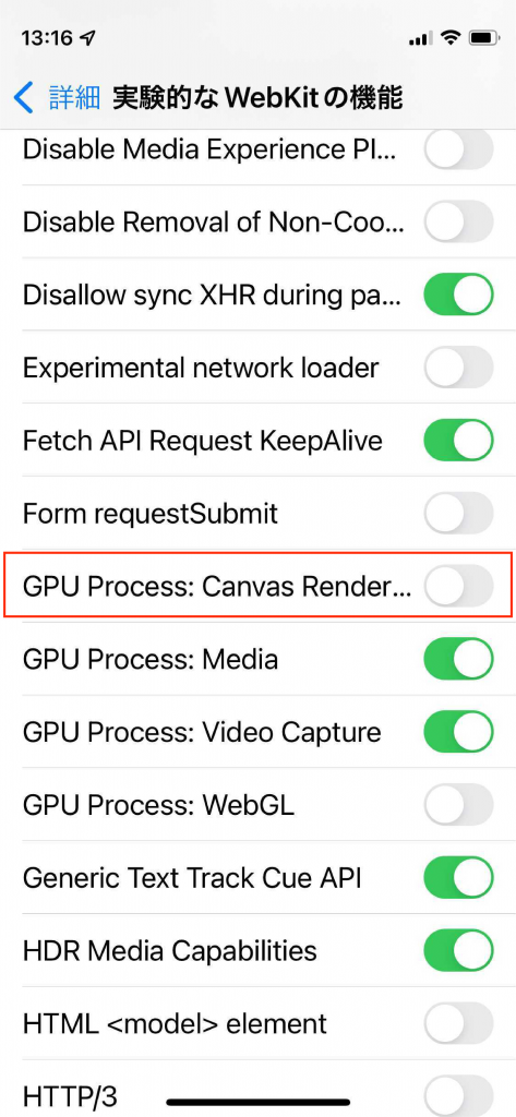 GPU Process: Canvas Renderingの右にあるボタンをオフにする